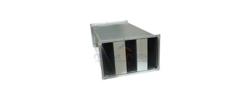 Монтаж: Шумоглушитель выполнен из оцинкованной стали со специальным звукопоглощающим материалом. Шумоглушитель устанавливается в канале на реечных соединениях по направлению движения воздуха, указанном на чертеже стрелкой. Максимальная рабочая температура составляет 600 С, максимально допустимая скорость 10 м/с. Для достижения максимальной эффективности шумопоглощения рекомендуется предусмотреть перед шумоглушителем прямолинейный участок длиной не менее 1 м.